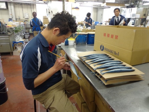工場長のTさんの華麗な着色技術により、サンマがみるみるできあがっていきます。