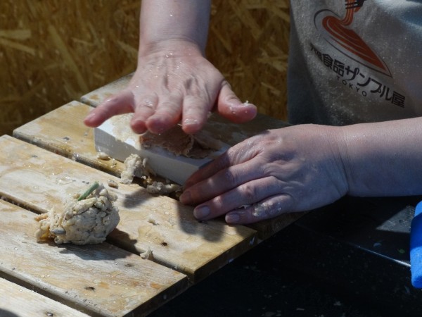 肉の質感、皮の柔らかさで、この時点で本物の餃子を作っているのと勘違いしてしまうくらいのクオリティで、みなさんとても感動しているようでした。